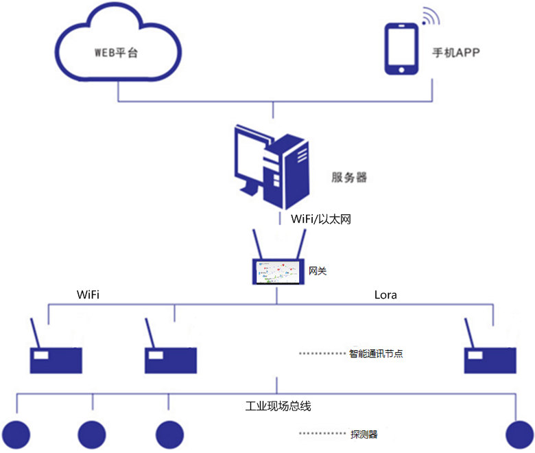 由空氣質(zhì)量傳感器、粉塵傳感器、噪音傳感器、智能通信節(jié)點(diǎn)等組成,具有空氣質(zhì)量監(jiān)測、揚(yáng)塵監(jiān)測、噪音監(jiān)測功能。智能通信節(jié)點(diǎn)與網(wǎng)關(guān)互聯(lián)互通,上報(bào)環(huán)境監(jiān)測數(shù)據(jù),通過網(wǎng)關(guān)發(fā)布到云平臺(tái)展示。