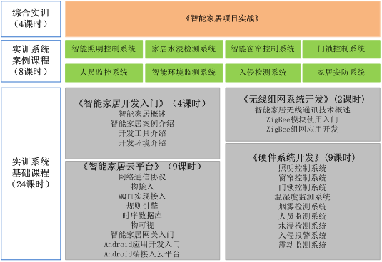 (5) 實(shí)驗(yàn)體系:包含完整的Android、Linux兩大實(shí)驗(yàn)體系,以智能家居實(shí)訓(xùn)系統(tǒng)為基礎(chǔ),包含多個(gè)智能家居子系統(tǒng)案例。