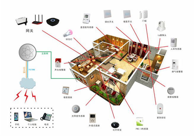 5、智能家居網(wǎng)關(guān):智能家居網(wǎng)關(guān)作為整體系統(tǒng)的核心設(shè)備,建立zigbee無線網(wǎng)絡(luò),與各個(gè)智能終端相連,運(yùn)行在手機(jī)端的管理軟件向智能家居網(wǎng)關(guān)發(fā)送命令可統(tǒng)一管理各傳感器與窗簾電機(jī)、家用電器、燈光系統(tǒng)等設(shè)備。軟件把傳感器與電器聯(lián)系起來,使之成為一個(gè)整體,互相影響,互相協(xié)作運(yùn)行,實(shí)現(xiàn)對家居電器的自動(dòng)化管理、安防自動(dòng)化等功能。軟件提供遠(yuǎn)程服務(wù),用戶通過軟件可實(shí)施遠(yuǎn)程控制家電,并實(shí)現(xiàn)遠(yuǎn)程監(jiān)控。