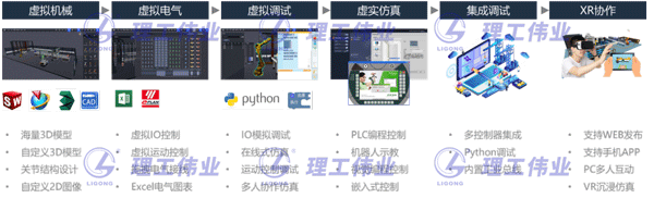 配合IMT虛擬仿真按照實(shí)驗(yàn)室已有的真實(shí)化產(chǎn)線可1:1搭建虛擬化系統(tǒng),并配套完整的從認(rèn)知到產(chǎn)線應(yīng)用的階段化開發(fā)課程資源,全面詳細(xì)的介紹了數(shù)字化產(chǎn)線構(gòu)成以及集成方式,并通過虛擬仿真技術(shù)創(chuàng)建與真實(shí)完全一致的虛擬產(chǎn)線,直接進(jìn)行虛擬仿真調(diào)試。特色在于,通過將PLC、工業(yè)機(jī)器人、計(jì)算機(jī)軟件控制技術(shù)結(jié)合,分單元分層講解數(shù)字化產(chǎn)線的各個(gè)層級(jí)個(gè)功能的實(shí)施及編程控制方法,并能夠以虛擬仿真加以展示及實(shí)現(xiàn)。
