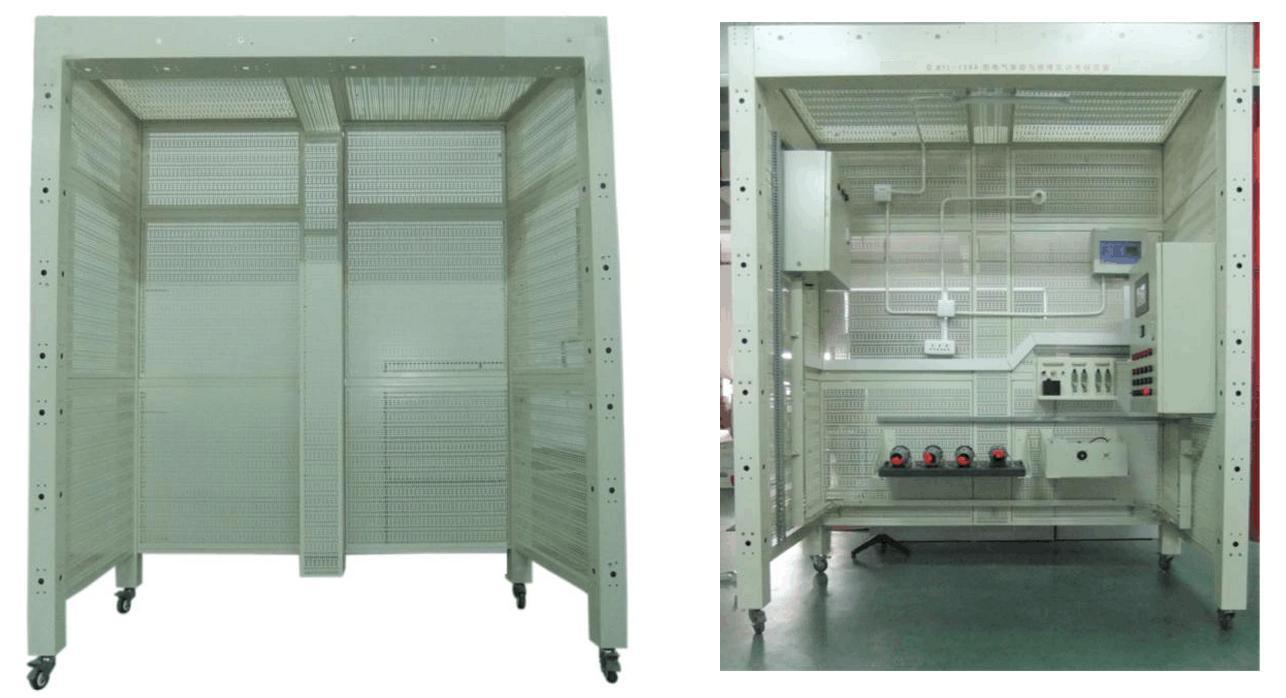 裝置可進(jìn)行電工安裝,如橋架安裝,PVC管安裝,吊燈,白熾燈座,日光燈,開關(guān),插座,控制箱,配電箱等,包含有交流異步電動機(jī),直流電動機(jī),步進(jìn)電機(jī),伺服電機(jī),溫度控制器,電偶,PLC,變頻器觸摸屏等控制與受控對象。每個操作組配套一個移動式工具車和元件柜,便于對原件的保管和安裝施工,從根本上解決了學(xué)校在普通墻面上進(jìn)行安裝培訓(xùn)的使用不方便,實(shí)訓(xùn)范圍窄的問題。