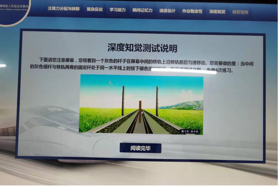 8.深度知覺測(cè)試:用來檢測(cè)被測(cè)試人的深度知覺。深度知覺又稱深視力,是指對(duì)物體深度運(yùn)動(dòng)的相對(duì)距離和空間位置視感知的心理素質(zhì)和能力。