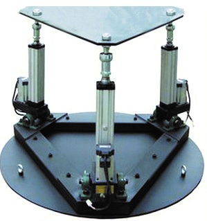 LG-JT型動感交通安全體驗駕駛模擬器設(shè)備由模擬駕駛艙、視景模擬駕駛軟件、數(shù)據(jù)采集系統(tǒng)、三自由度平臺系統(tǒng)由Stewart機構(gòu)的三自由度運動平臺、計算機控制系統(tǒng)、驅(qū)動系統(tǒng)等組成(如下圖)。下平臺安裝在地面的固定基座基上,上平臺為支撐平臺。計算機控制系統(tǒng)通過協(xié)調(diào)控制電動缸的行程,實現(xiàn)運動平臺的三個自由度的運動。