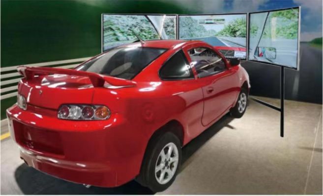 a.主視屏:顯示駕駛前方道路與周圍路況、使學(xué)生能感覺身在駕駛室操作著運行中的汽車。并顯示檔位、成績分?jǐn)?shù)。