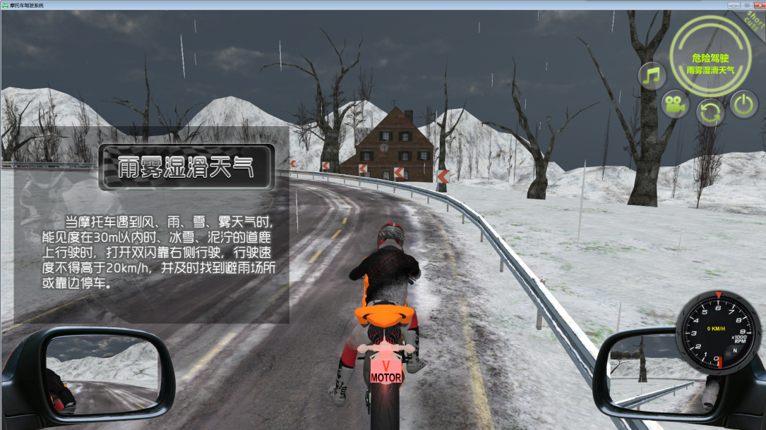 雨霧濕滑天氣:摩托車在行駛中,遇到雨天、下雪、大風(fēng)、等天氣需要做出的相對應(yīng)處理。