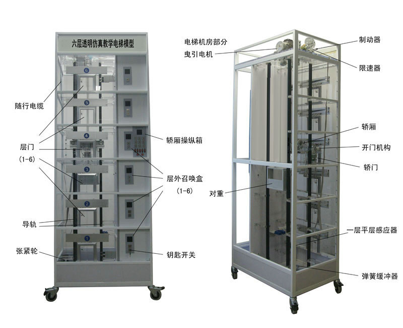 透明電梯實訓裝置(六層、仿真實物)是為了配合各大院校、職業(yè)技術學院、技師學院、技校、勞動就業(yè)培訓中心、質量技術監(jiān)督局特檢中心、電梯維修物業(yè)管理部門等有關電梯專業(yè)和工業(yè)自動化專業(yè)課程實驗演示,使更多的人能夠更好地了解電梯、使用電梯,培養(yǎng)出更多的電梯專業(yè)人才,適應電梯行業(yè)的發(fā)展需要,我公司經過深入探索研究,精心設計的。