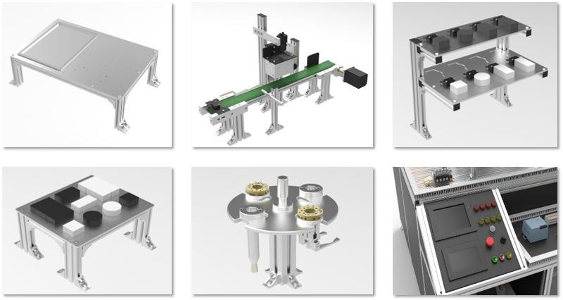 另外,模塊化機械設計是工業(yè)發(fā)達國家近二十年來一直采用的一種先進的機械產(chǎn)品設計方法。學生自主設計臺面功能模塊可作為《機械設計》課程的綜合實驗部分。學生根據(jù)課上所學機械原理和機械設計的基礎知識,在三維設計軟件中實現(xiàn)自己的設計想法,可自行設計機器人末端工具,臺面工裝、生產(chǎn)流水線及視覺分揀等。學生也可組隊完成整個臺面的重新規(guī)劃,利用設備本體提供的氣路和電路總線,賦予臺面新的設計亮點。此部分也可作為機械設計、機械制造、機電一體化、工業(yè)設計等專業(yè)的畢業(yè)設計內(nèi)容。此工作站整體外形統(tǒng)一,具有外部通訊接口,所以有配置靈活、便于擴展的優(yōu)點。各工作站既可以作為獨立的功能個體,完成機器人的實訓任務。也可以作為相互的擴展模塊,通過電纜緊密拼裝后組成一個整體的結構。某一個工作站作為主控,其他工作站協(xié)同。通過之前所述不同的設計賦予每個工作站不同的功能, 可添加節(jié)拍控制、生產(chǎn)管理、工業(yè)系統(tǒng)工程等管理思路,使其整體實現(xiàn)更加多元化的功能。