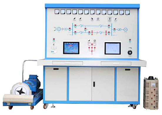 一、概 述 電力系統(tǒng)綜合自動化技能實訓考核裝置由五部分組成:同步發(fā)電機組、機組控制柜、輸電線路及監(jiān)視保護屏、無窮大電力系統(tǒng)和阻抗負載。對發(fā)電廠中常用的自...