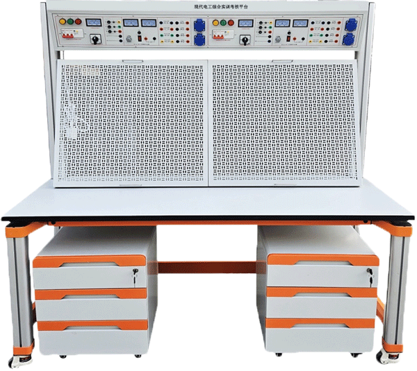 現(xiàn)代電工綜合實訓考核實訓臺由實訓屏(內(nèi)置電源)、實訓桌、實訓儲物柜三大部分組成。