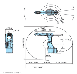 LGL-607/607L型 工業(yè)機(jī)器人輕量型機(jī)器人,外形小巧、重量輕,是*適合用于組裝小型單元機(jī)器人,能夠高速、高精度的完成上下料、分揀、裝配等各項(xiàng)工作。同時(shí)所有機(jī)器人線纜內(nèi)置,能夠在狹小的空間靈活的進(jìn)行作業(yè),安裝方式可以選擇地面安裝、掛裝、倒裝。LGL-607/607L型 工業(yè)機(jī)器人手腕額定負(fù)載5Kg,*大負(fù)載波6Kg,*大工作半徑LGL-607型*大工作半徑為720mm,LGL-607L型*大工作半徑為910MM。