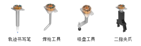 (1)工具支架: 材質(zhì):鋁合金、2020 鋁型材 表面處理:鋁合金銀白氧化處理 承載快換數(shù)量:4 個(gè) 具有光電感應(yīng)器,實(shí)時(shí)反饋工具快換工具狀態(tài) (2)工具快換裝置: 快換類型:自動氣動型 機(jī)器人側(cè): 數(shù)量:1個(gè) 承載重量:5kg (max) 氣源通路:6 路 通訊接口:12 路 重量:250g 夾具側(cè): 規(guī)格: 數(shù)量:4 個(gè) 承載重量:5kg (max) 氣源通路:6 路 通訊接口:12 路 重量:115g 電動夾爪末端: 數(shù)量:1 套 氣缸缸徑:20mm 運(yùn)動方式:往復(fù)型 復(fù)動行程:10.4mm 重復(fù)定位精度:0.02mm (3)白板筆書寫末端: 數(shù)量:1 套 固定方式:頂針固定式,可快速更換 (4)模擬焊槍末端: 材質(zhì):鋁合金 外形:120°尖端彎曲,模擬真實(shí)焊槍 (5)真空吸盤手爪末端: 吸盤數(shù)量:1 個(gè) 吸盤類型:φ13mm ,風(fēng)琴式 吸盤桿:不可旋轉(zhuǎn),緩沖行程6mm,頭部可安裝10mm、13mm、16mm不同規(guī)格吸盤。 |