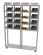 貨位數(shù)量:4 行×4 列 16 個(gè)貨位 整體尺寸:1640×400×1800mm 貨位傳感器:光電式、二維碼 材料:鋁型材 托盤:尼龍塑料定制 |