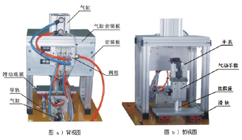 該配置配有多種類型的氣缸、電磁閥,磁性開關(guān),如:單出桿氣缸、單出雙桿氣缸、旋轉(zhuǎn)氣缸等氣動執(zhí)行元件、單控電磁閥、雙控電磁閥和磁性開關(guān)等,基于這些氣動控制元件,可完成下列氣動技術(shù)的安裝調(diào)試訓(xùn)練任務(wù):