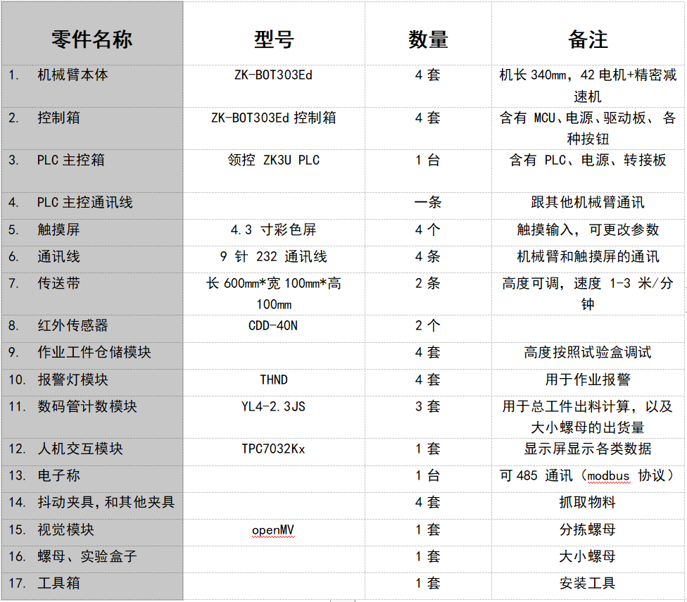 其他:包括系統(tǒng)實(shí)訓(xùn)臺(tái)、控制按鈕與連接器盒、不同大小螺母、走線槽等氣路系統(tǒng)組成。