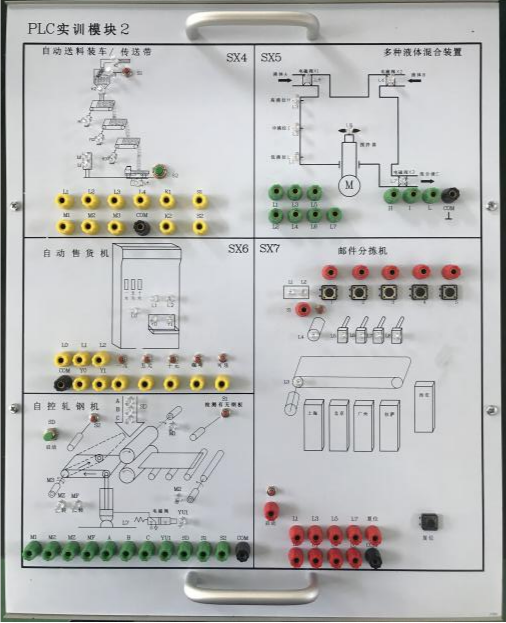 2、項(xiàng)目實(shí)訓(xùn)模塊:利用目前典型的可編程控制器及總線技術(shù)完成對工業(yè)生產(chǎn)中模擬對象,實(shí)物模型中的邏輯、模擬、過程、運(yùn)動(dòng)等的控制實(shí)訓(xùn),完成學(xué)生認(rèn)知、設(shè)計(jì)、安裝、調(diào)試、檢修等多種技能實(shí)訓(xùn)。