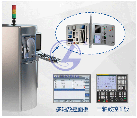 3、平臺(tái)上的五軸和三軸的控制面板區(qū)域,通過簡單的轉(zhuǎn)軸旋轉(zhuǎn),就可以方便的切換。