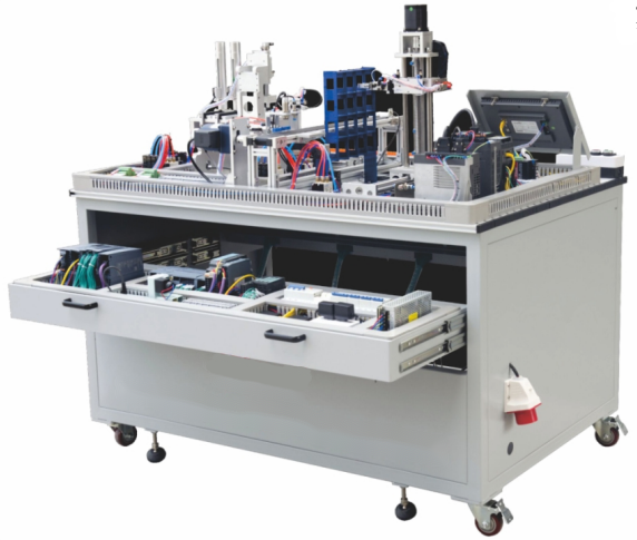 LGY-ZD09D型PLC與人機界面實驗裝置采用開放式和拆裝式的整體結(jié)構(gòu),實訓(xùn)裝置用于機械部件組裝,可根據(jù)現(xiàn)有的機械部件組裝生產(chǎn)設(shè)備,也可添加機械部件組裝其他生產(chǎn)設(shè)備,使整個裝置能夠靈活的按教學(xué)要求組裝的一款光機電一體化設(shè)備。本設(shè)備在鋁合金導(dǎo)軌式實訓(xùn)臺上安裝多個工作單元,構(gòu)成一個典型的自動生產(chǎn)線的機械平臺,系統(tǒng)各機構(gòu)采用了氣動驅(qū)動、變頻器驅(qū)動和伺服電機位置控制等技術(shù);在控制系統(tǒng)方面,采用了觸摸屏、S7-1500/1200PLC、主從站等模塊,將系統(tǒng)分為現(xiàn)場控制級以及現(xiàn)場設(shè)備級,真實模擬現(xiàn)代工廠的控制系統(tǒng)。在信息管理級,采用工業(yè)以太網(wǎng)技術(shù);在現(xiàn)場控制級采用Profibus DP現(xiàn)場總線技術(shù)。
