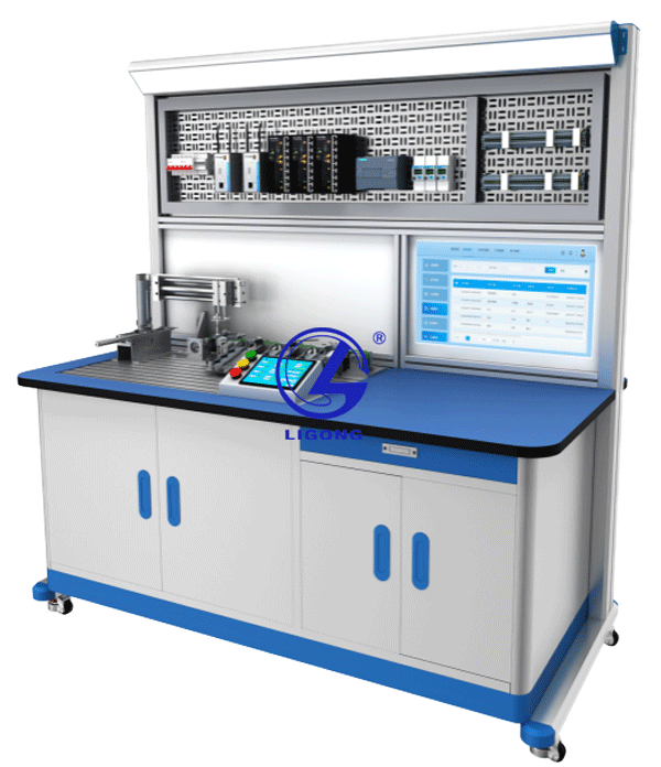 本設備采用鋁合金結(jié)構搭建而成,桌面采用導軌式鋁型材和實芯板拼接而成,導軌式鋁型材桌面用于安裝機電一體化控制對象,實芯板桌面用于放置電腦和學生學習之用。工作臺前立面用于安裝電源裝置和電氣控制系統(tǒng)及扁平等。安裝版采用網(wǎng)孔板的形式,固定方式為窗戶開關結(jié)構,方便學員安裝和檢修電控系統(tǒng)。