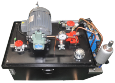 液壓泵站由三相電機(jī)、變量葉片泵、單向閥、風(fēng)冷器、空氣濾清器、油溫油面計、精密過濾器、壓力表、蓄能器、泄壓閥組等組成。