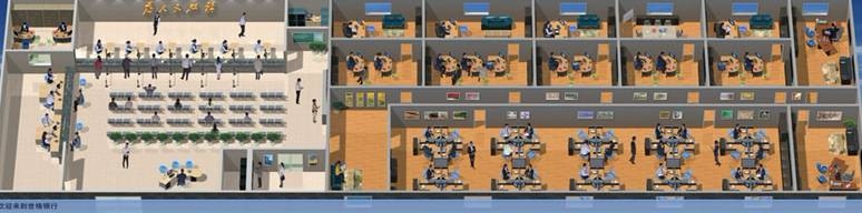 LG-RCJ03A 現(xiàn)代商業(yè)銀行模擬教學平臺對于現(xiàn)代商業(yè)銀行的工作環(huán)境進行全面仿真,包括營業(yè)大廳的布局,對公對私的工作臺、貸款管理部門的辦公室等全3d的建筑仿真;工作人員日常業(yè)務使用的綜合業(yè)務系統(tǒng)等核心業(yè)務軟件和各種業(yè)務單據;簽章、電腦、打印機、點鈔機、票箱、打碼機、壓數(shù)機等辦公設備。并且在模擬實操中讓學生來熟悉和使用。