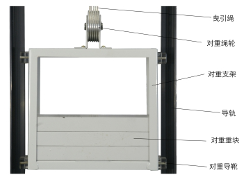 2. 井道部分:包括導(dǎo)軌、對重裝置、緩沖器、限速器、鋼絲繩張緊裝置、隨行電纜等。見下圖