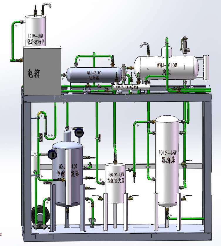 一、裝置特色 整套裝置由鋼制安裝框架、甲醇計(jì)量槽、甲醇汽化器、氣體混合器、氧化器、仿真儀表、就地計(jì)算機(jī)操作臺(tái)、、就地智能儀表控制上位監(jiān)控軟件、外置配套...