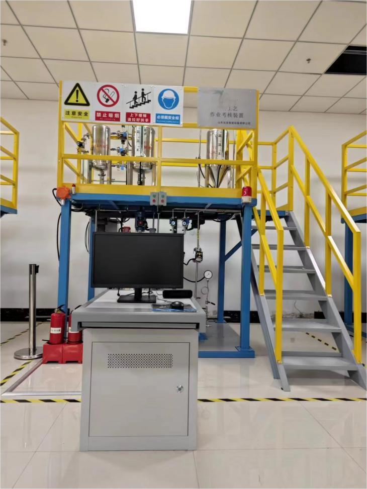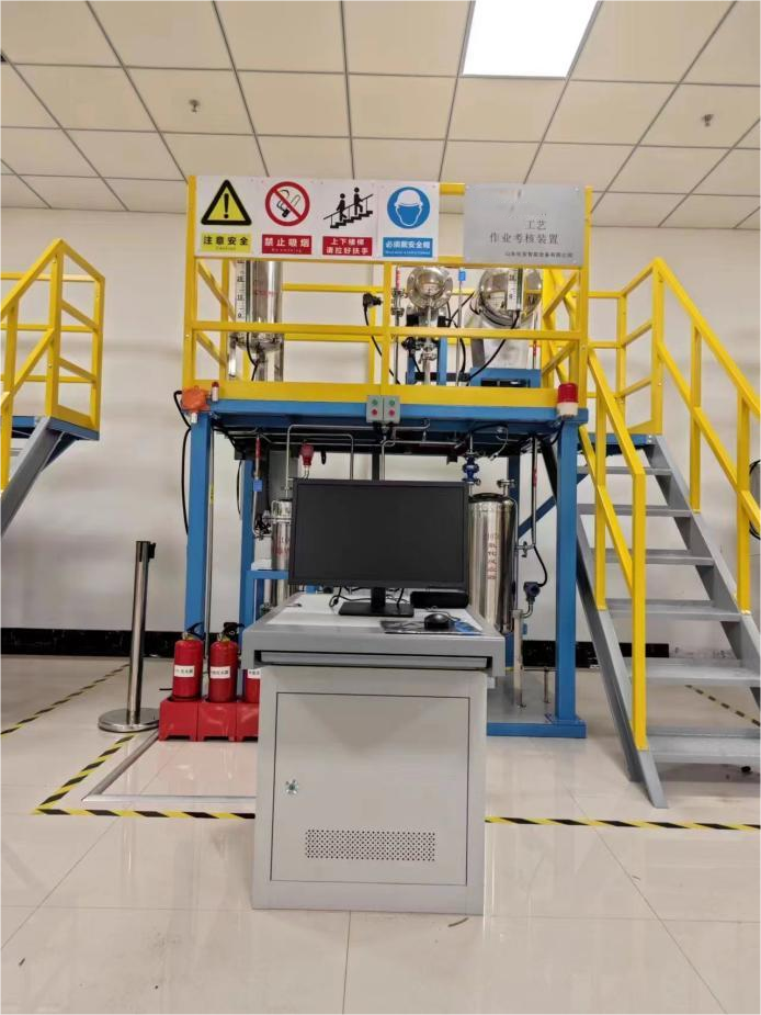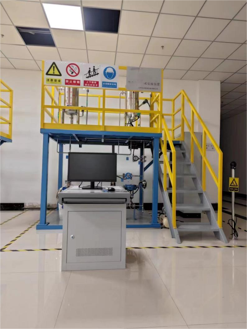 一、裝置特色 整套裝置由鋼制安裝框架、苯計(jì)量槽、硝化釜、冷凝器、仿真儀表、就地計(jì)算機(jī)操作臺(tái)、、就地智能儀表控制上位監(jiān)控軟件、外置配套設(shè)備等組成,工藝路...