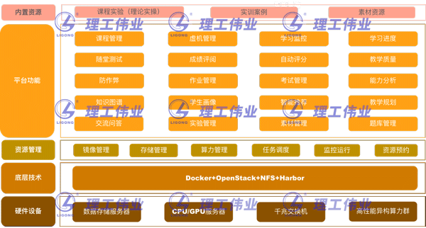 在教學(xué)方式上,提供了一站式教學(xué)服務(wù),可滿足用戶備課、授課、課堂互動(dòng)、課后作業(yè)、課程考核、實(shí)訓(xùn)拓展、教學(xué)考試和教學(xué)分析全過程教學(xué),并且針對(duì)不同學(xué)習(xí)程度的用戶定制打造實(shí)驗(yàn)學(xué)習(xí)環(huán)境和課程體系,讓教學(xué)更簡(jiǎn)單,更高效。