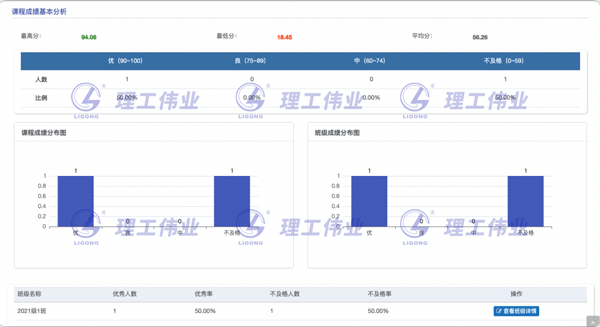 該模塊將課程目標的達成度結(jié)果,根據(jù)階段性成果維護的數(shù)據(jù),進行系統(tǒng)自動計算,計算的結(jié)果按照課程達成度、課程目標達成度進行逐級展示。系統(tǒng)支持針對達成度結(jié)果設(shè)置顏色預警,便于快速發(fā)現(xiàn)不達標的指標。且系統(tǒng)支持針對每一個課程目標的達成度結(jié)果,進一步鉆取獲得每一個學生的實際結(jié)果數(shù)據(jù),便于進一步分析出問題的學生和出問題的步驟。